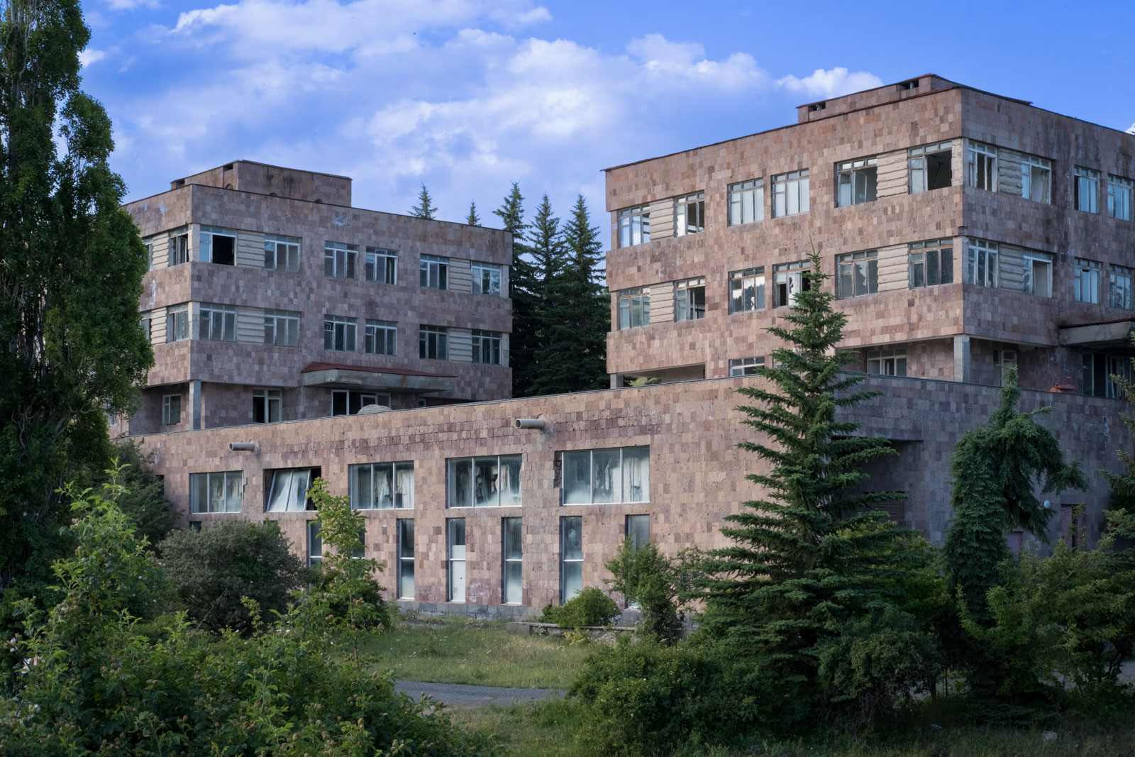 The domestic relics and industrial and technological remnants of the Soviet era, imposing but now in ruins, as if immobilized at the time of abandonment; the civil buildings of the Russian era, square but softened by pink tuff.