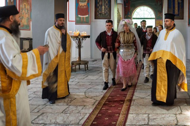 Galiฤnik รจ un piccolo borgo montano le cui case si snodano lungo un’unica strada principale che sale dolcemente fino alla Chiesa dei Santi Pietro e Paolo, posta a 1500 metri, il punto piรน elevato del villaggio. Di fronte a questa si erge Villa Dosta, un elegante edificio a due piani destinato a rivestire il ruolo di “casa dello sposo”. Piรน a valle, una piccola piazza con la sua fontana diventa il palcoscenico per le danze. Ancora piรน in basso, un’altra suggestiva villetta si trasforma, per l’occasione, nella “casa della sposa”. Questo matrimonio, รจ bene sottolinearlo, รจ autentico: ogni anno, una coppia ha l’onore di vivere e interpretare l’intero rituale secondo le antiche consuetudini.